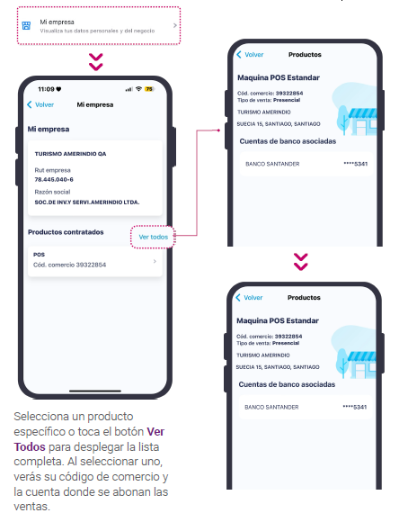 En esta sección puedes consultar los datos de tu negocio registrados en Transbank, ver los productos contratados, conocer la cuenta donde se abonan las ventas de cada producto Transbank y compartir los links de pago asociados, en caso de que cuentas con productos como Webpay.cl.